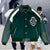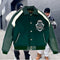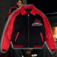 Wool jacket with leather sleeves. Features Avirex textured croc crest applique at front.