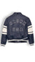 Limited Edition: Avirex jacket in 100% antique European lamb leather with Chicago, IL art patch set and applique lining art. Wide stripe detailing on sleeves.